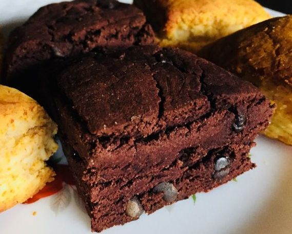 チョコ味のもちもち食感の米粉ケーキです。